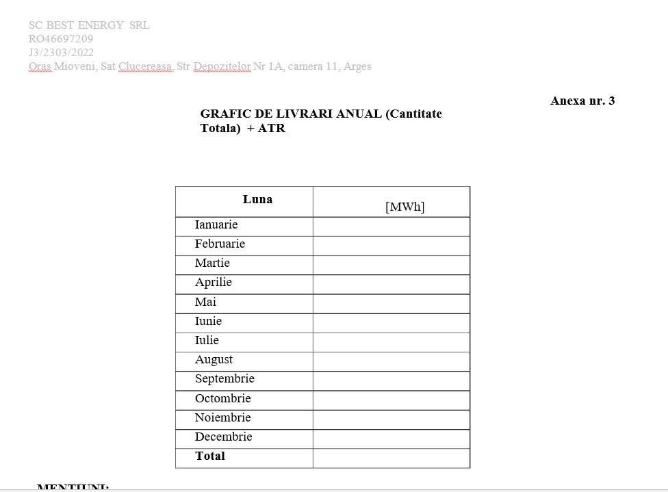 Art.3 – (1) Cantitatea estimata de energie electrică ce urmează să fie cumpărată de către Consumator de la